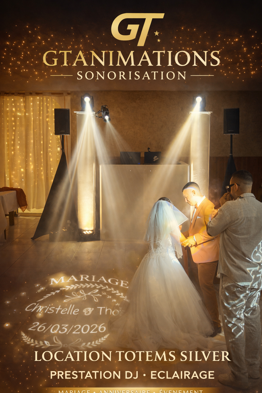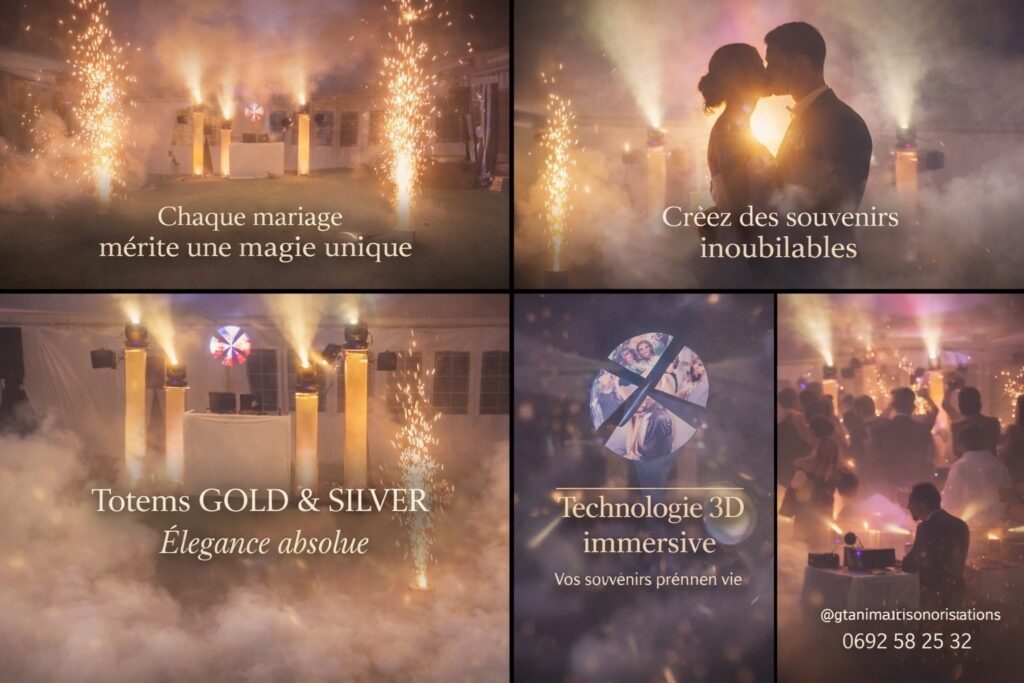 Garantissez une soirée inoubliable avec nos totems FULL GOLD & SILVER et effets lumineux spectaculaires.
